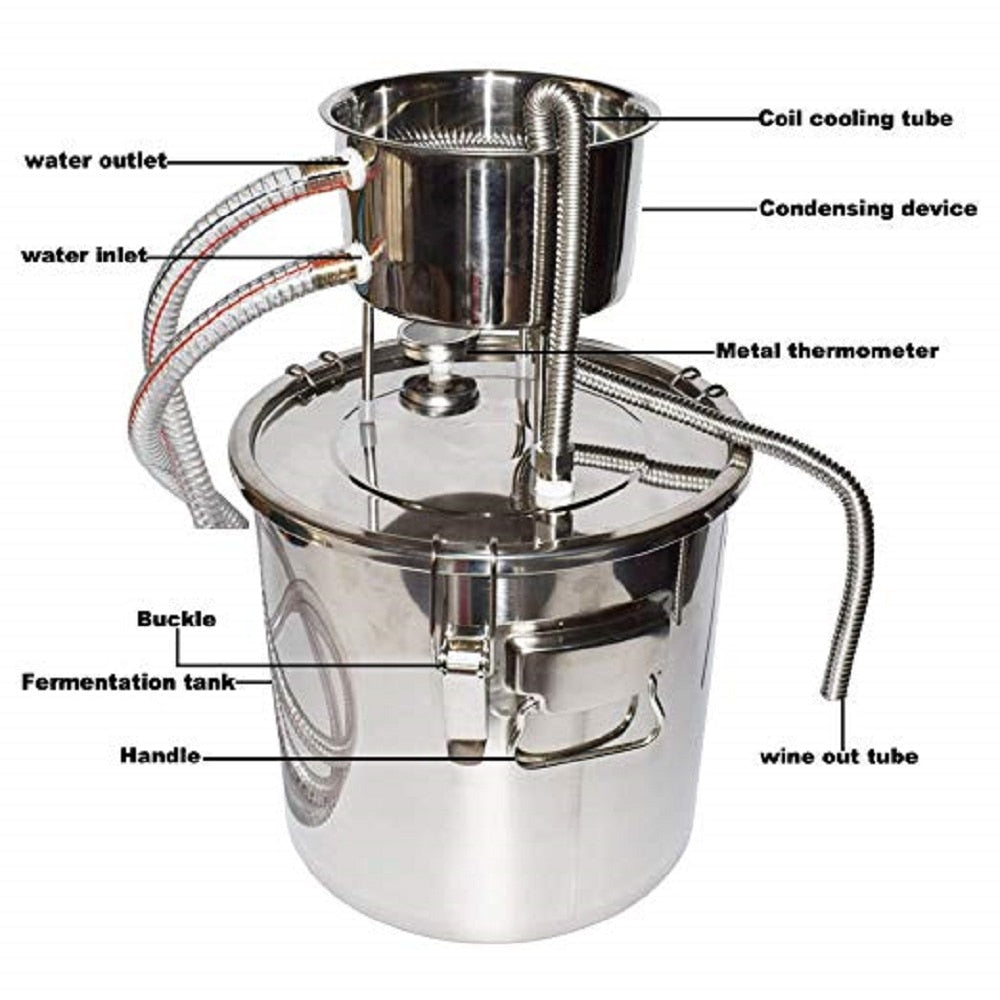 This alcohol distillery constructed with stainless steel is very durable and sturdy. You can use this to distill fruit wine, Brandy and Whiskey. Just pick the size needed and you will be amazed at all the flavors and products you can come up with. Perfect to serve in your own Home Bar.