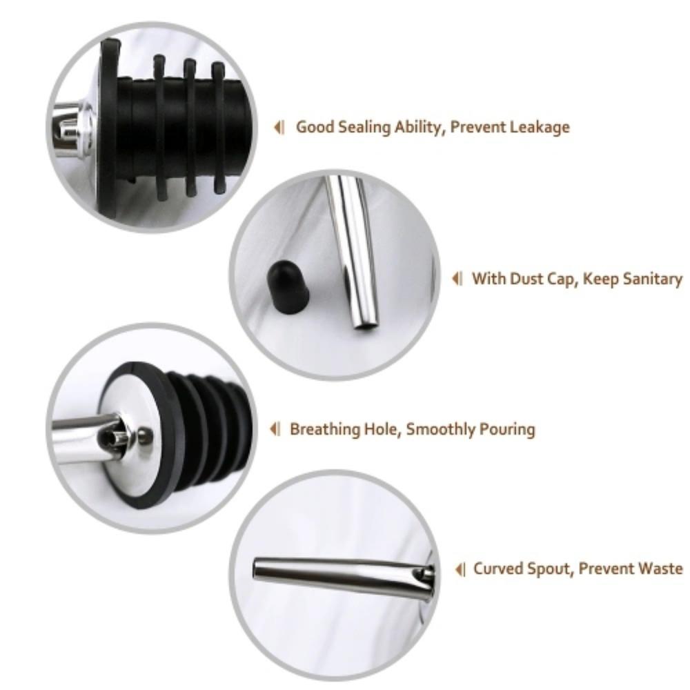 These stainless steel food grade rubber cork Liquor pourers give you accuracy, control and consistent pour speed. You will definitely be a professional using these in your Home Bar. Just let them soak in warm soapy water for 15 to 20 mins. then shake them under water to make sure the pourers are cleaned inside and out.