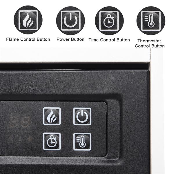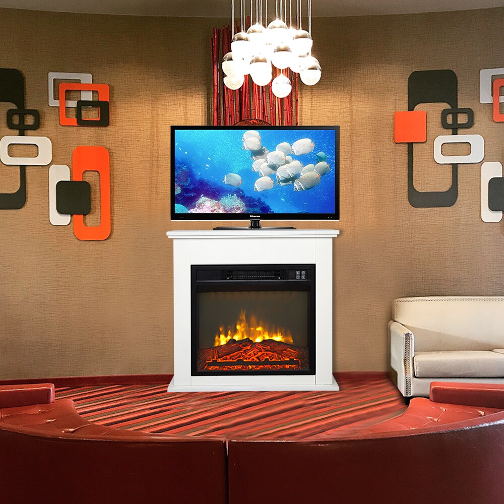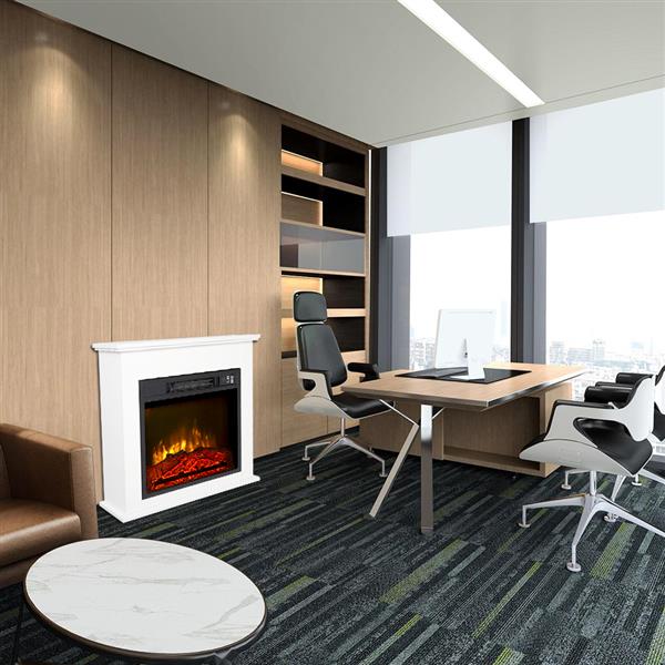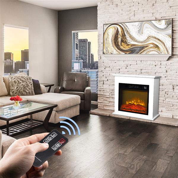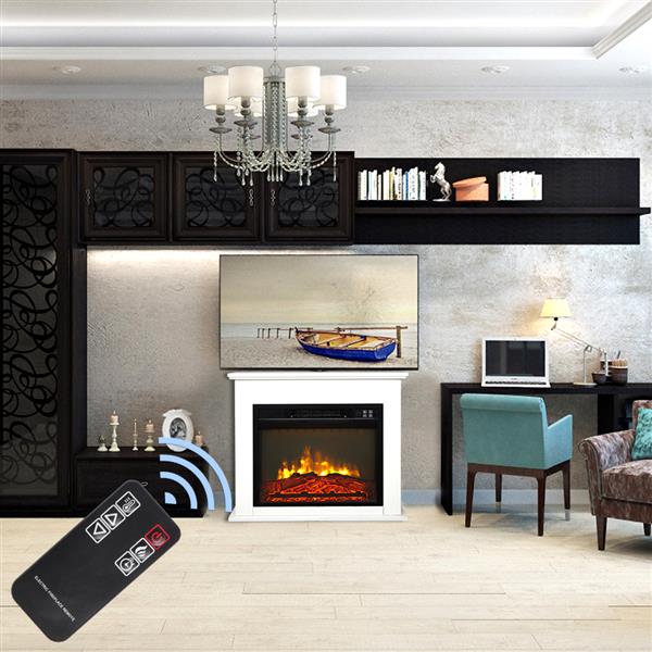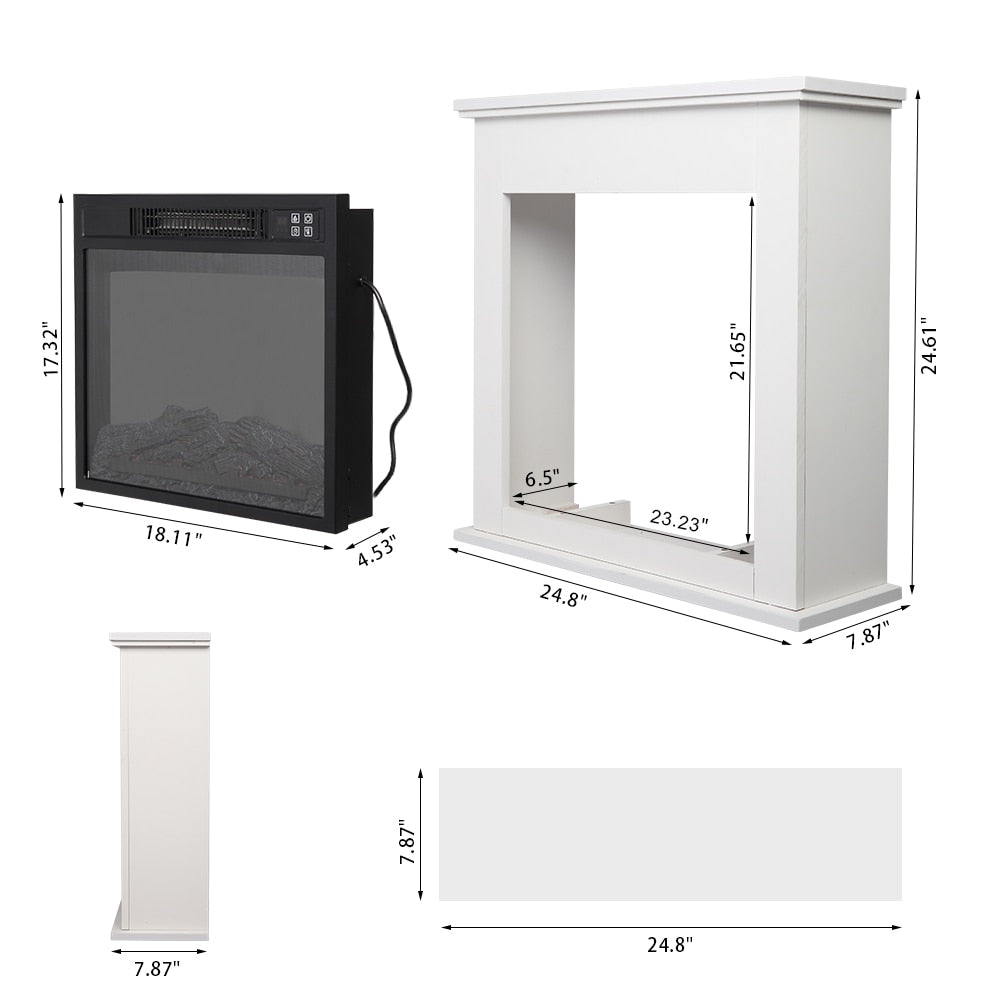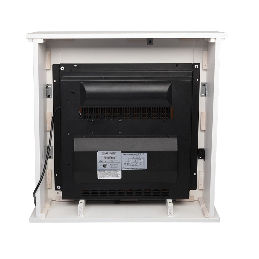 18In Electric Fireplace Insert White Wood Cabinet 1400W Single Color Fake Wood with Small Remote Control