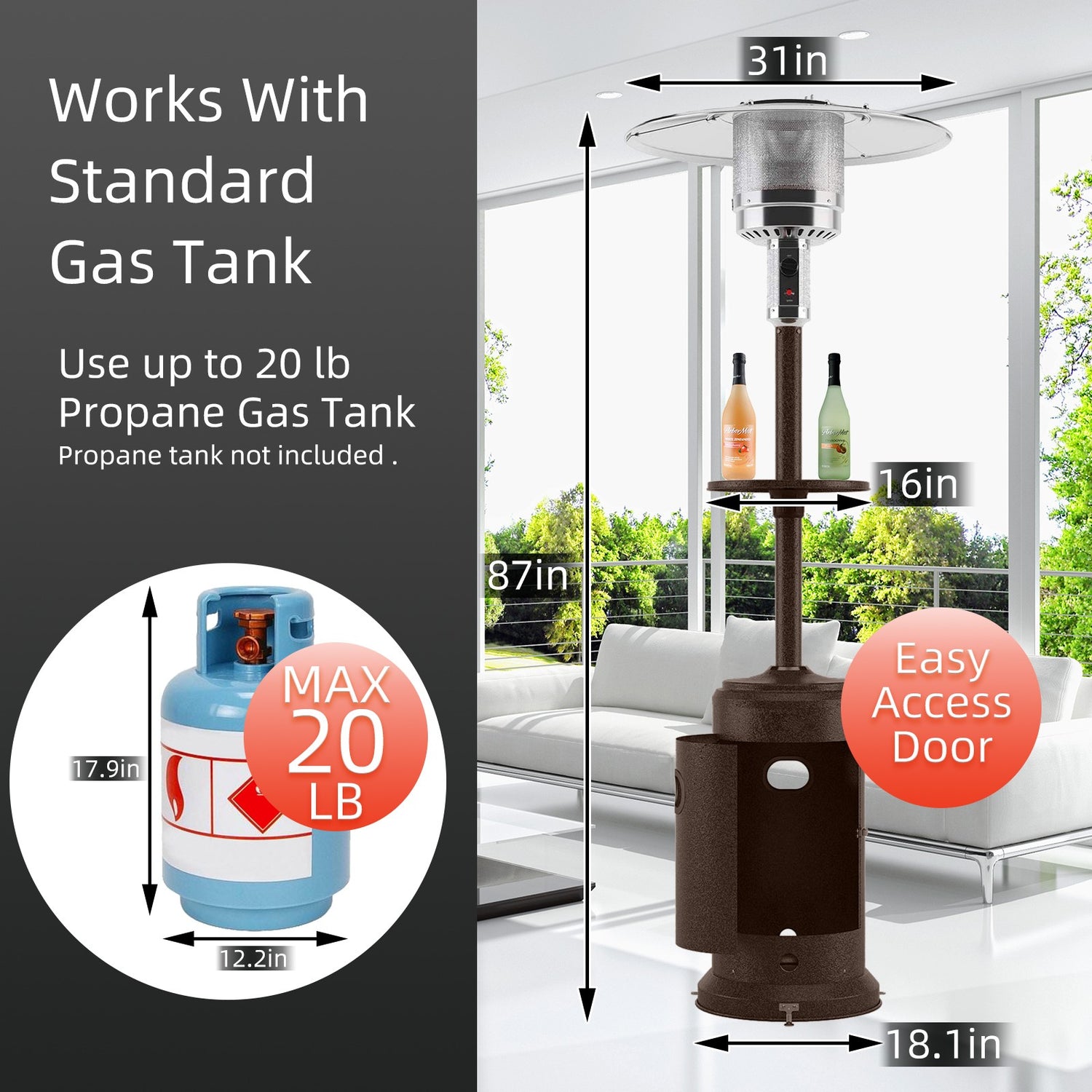46000 BTU Commercial Bronze Outdoor Patio Heater with Wheels Tray, 87-in