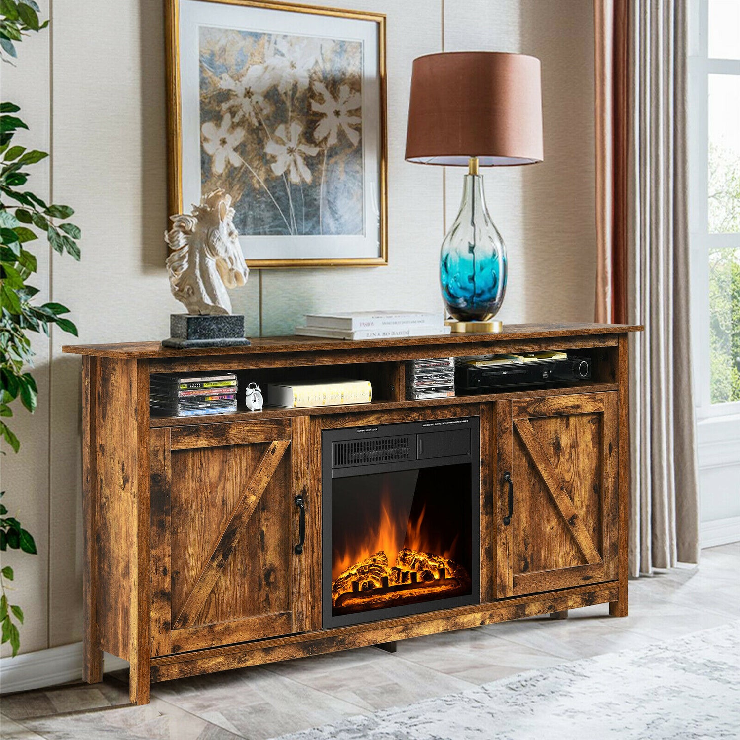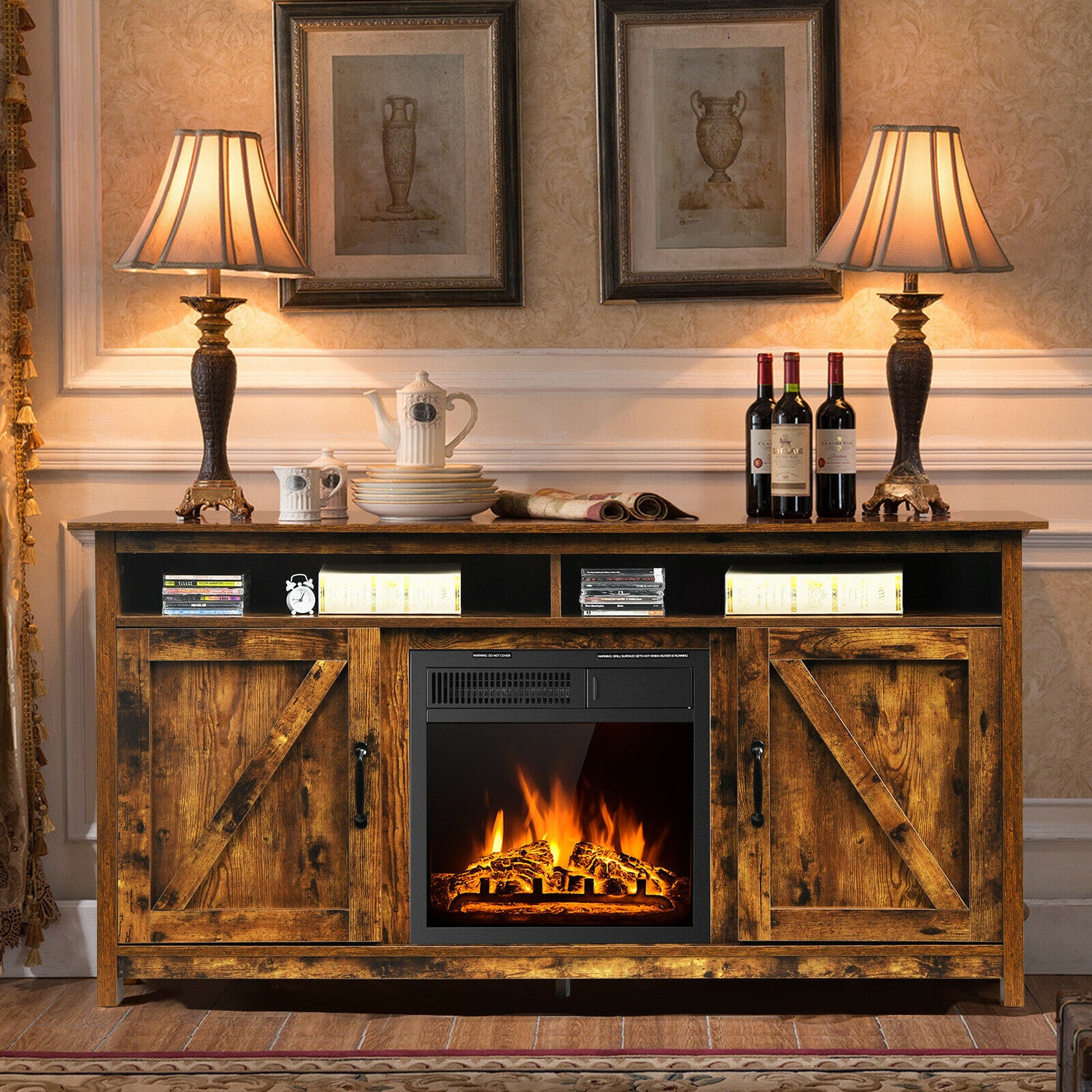 Rustic/Industrial Electric Fireplace TV Stand W/18” 750W/1500W