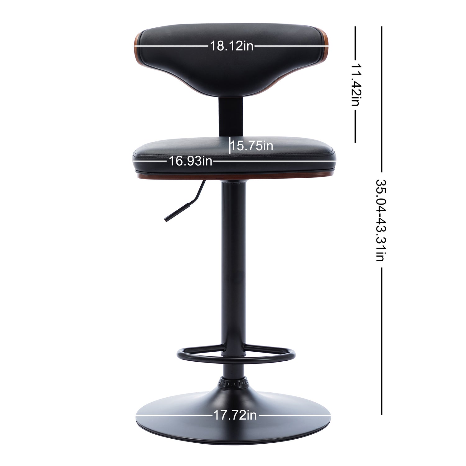 Adjustable Bar Stool ,Walnut Upholstered Swivel Barstool (Set of 2),Black