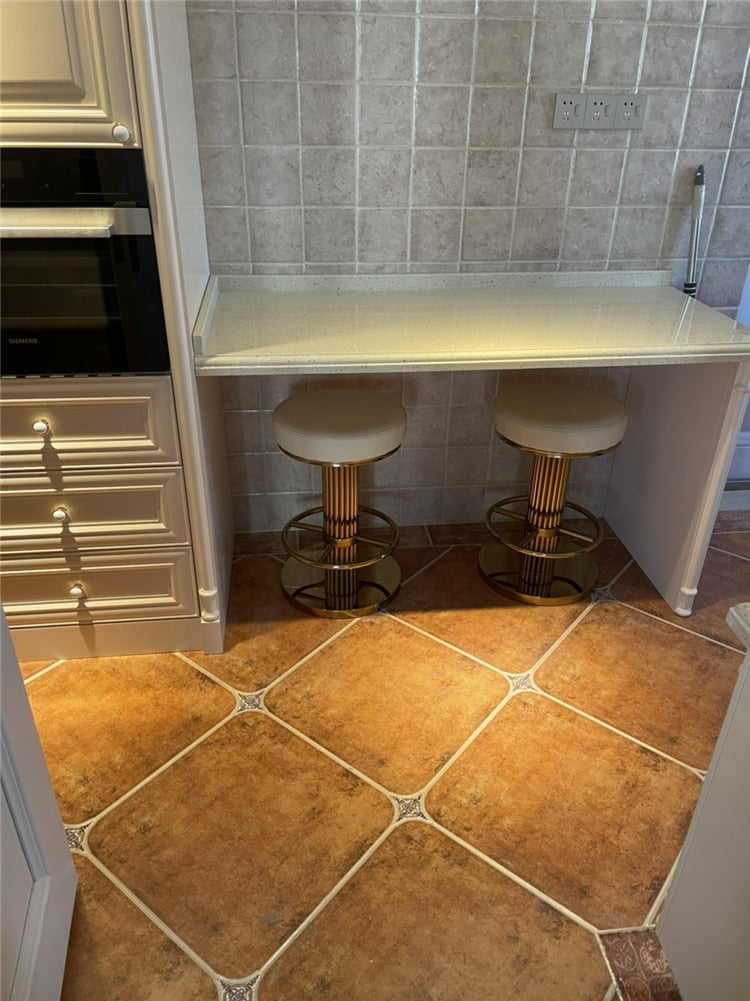 This beautiful modern gold plated steel barstools with fabric and leather barstools will look elegant in any home bar or restaurant.