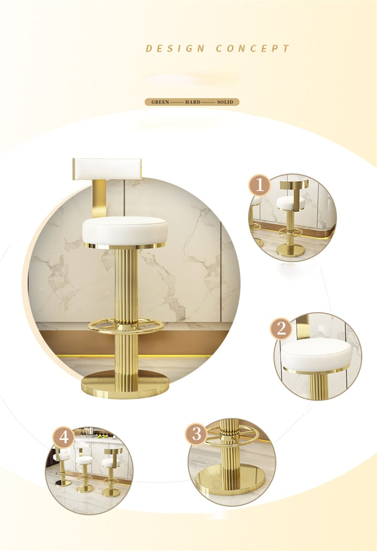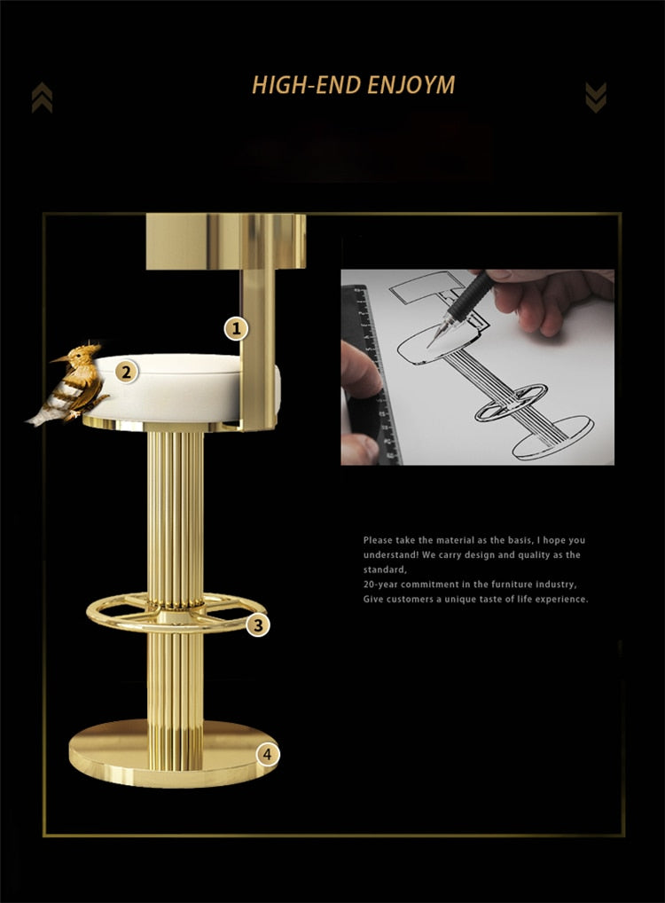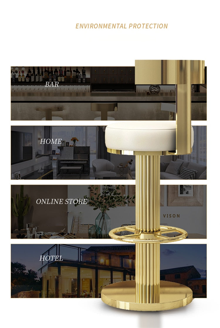 Luxury Modern Stainless Steel Bar Stools With Foot Rest