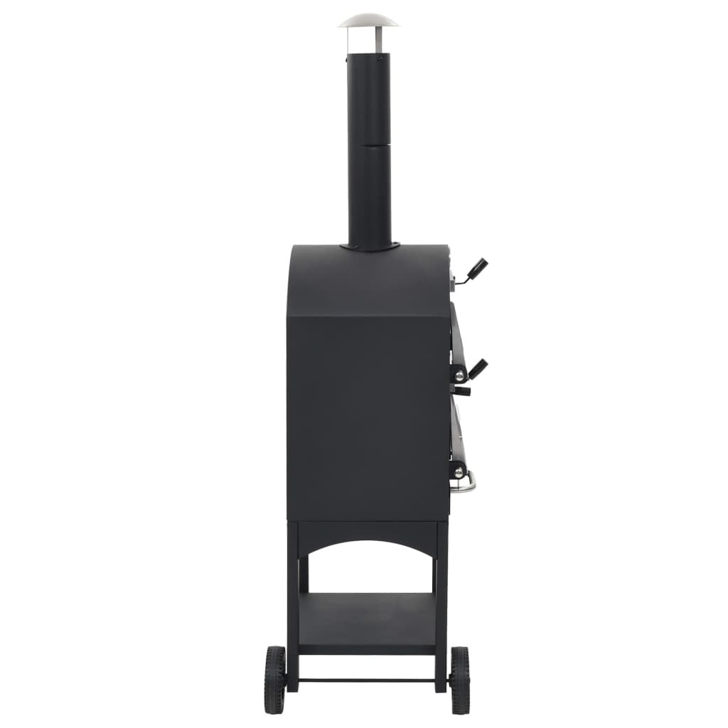 Whether for pizzas, bread, cakes or pies, nothing can match the smoky taste of traditional charcoal-fired ovens! In the comfort of your own yard, you will be able to bake authentic-tasting pizzas and don't be surprised if the scent brings you envious glances from your neighbors. Made of high-quality powder-coated steel, this oven is highly robust and durable. The fire tray is removable, allowing for quick and easy cleaning. The practical shelf underneath provides space for storing oven gloves or other supplies. This oven also comes with a built-in thermometer which displays the cooking temperature inside. Thanks to the two wheels, the smoker is easy to move around. A pizza stone is also included in delivery.