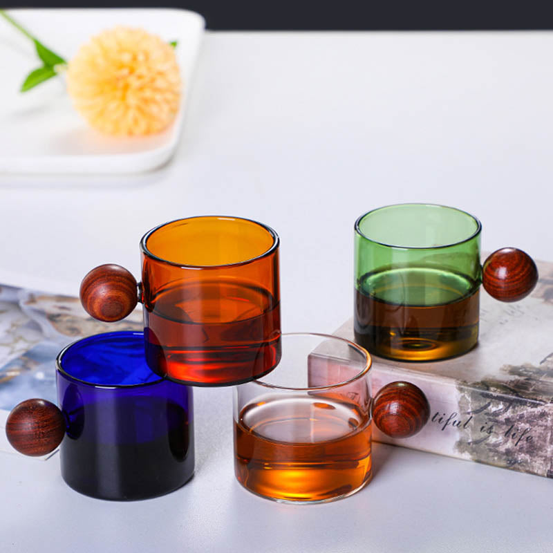 Coffee Tea or Liquor Wooden handle Glass Cup