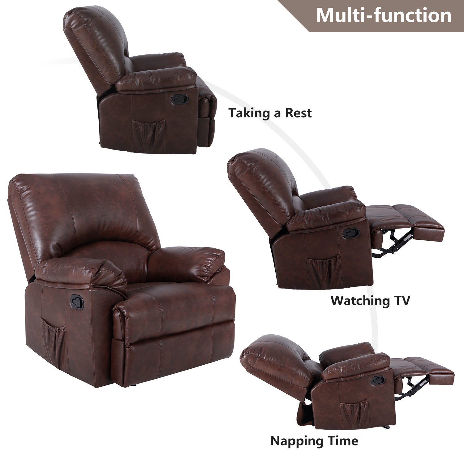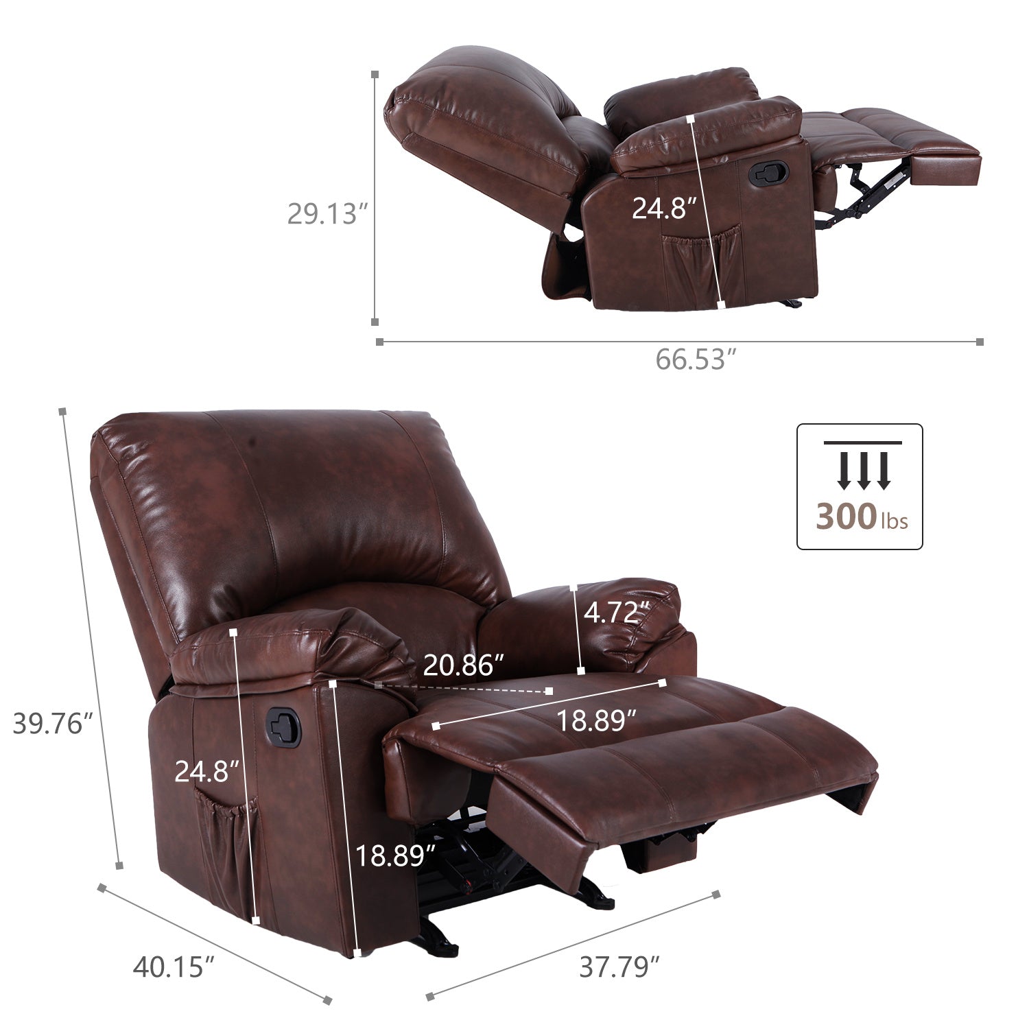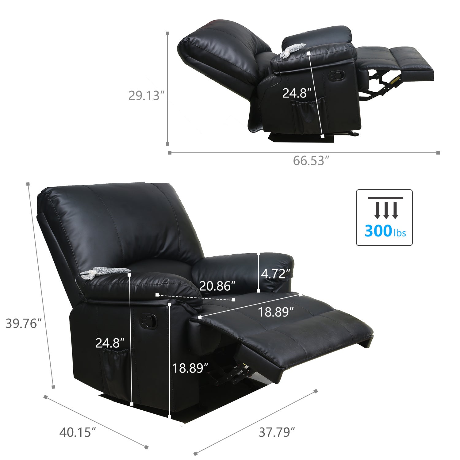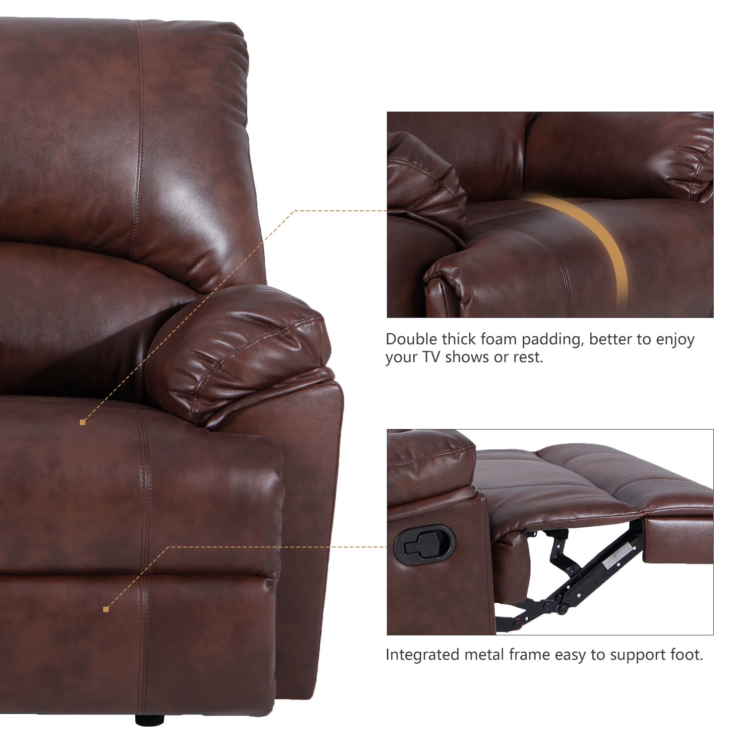 DURABLE AND EASY TO CLEAN-Our recliner chair is upholstered with durable PU,when water spills onto the recliner sofa