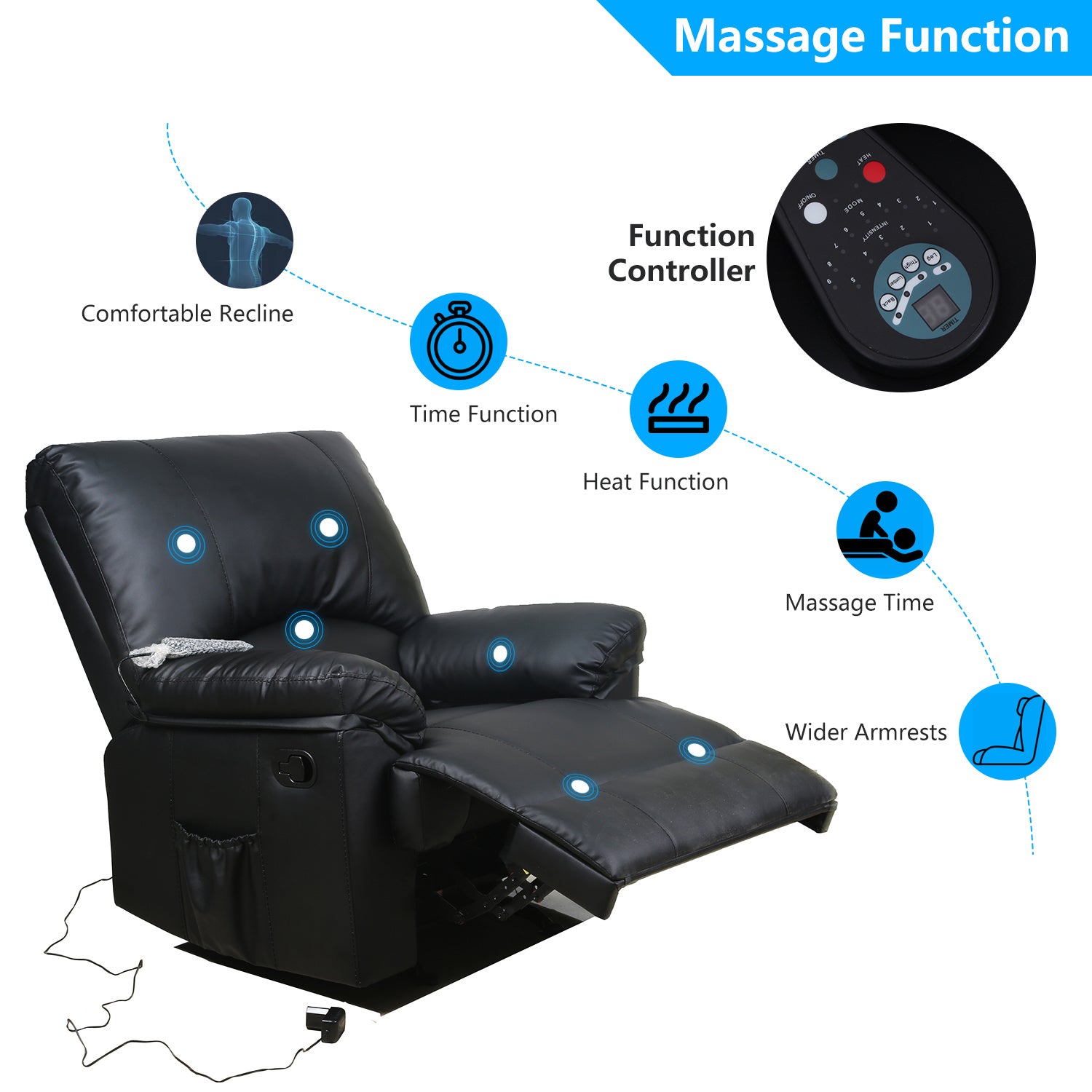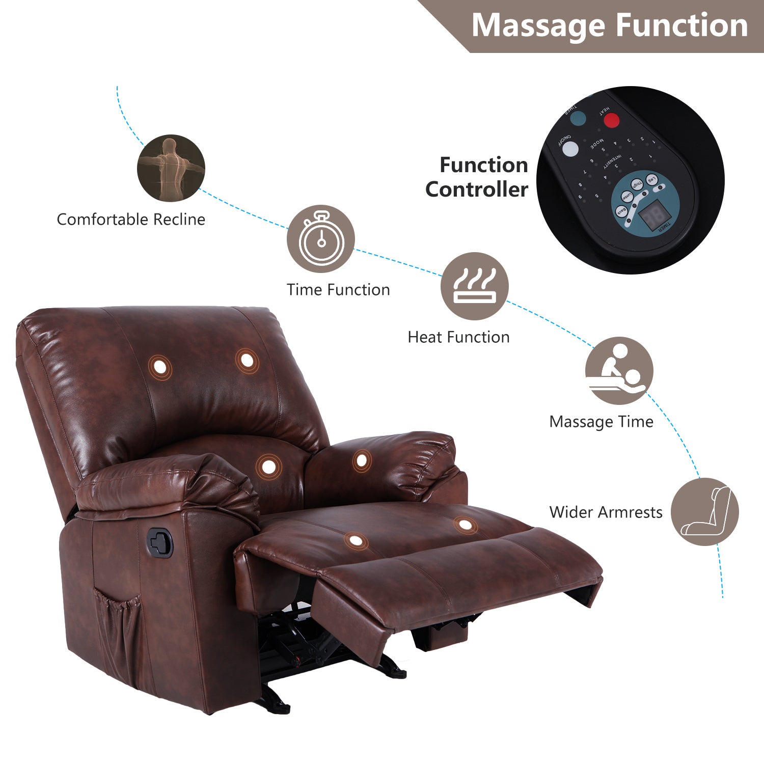 Free Shipping Recliner Chair Massage Rocker with Heated Modern PU Leather Single Sofa Seat Living Room Chair