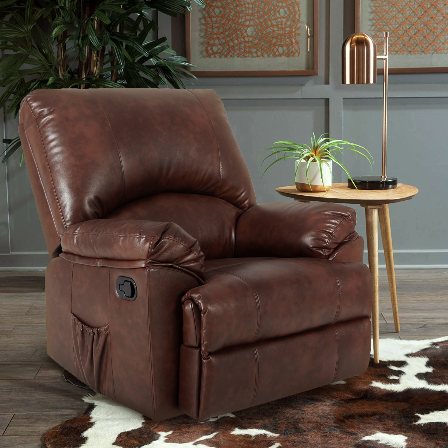 MODERN ROCKER RECLINER: Make a stylish living room statement with the handsomely rugged look of PU leather.