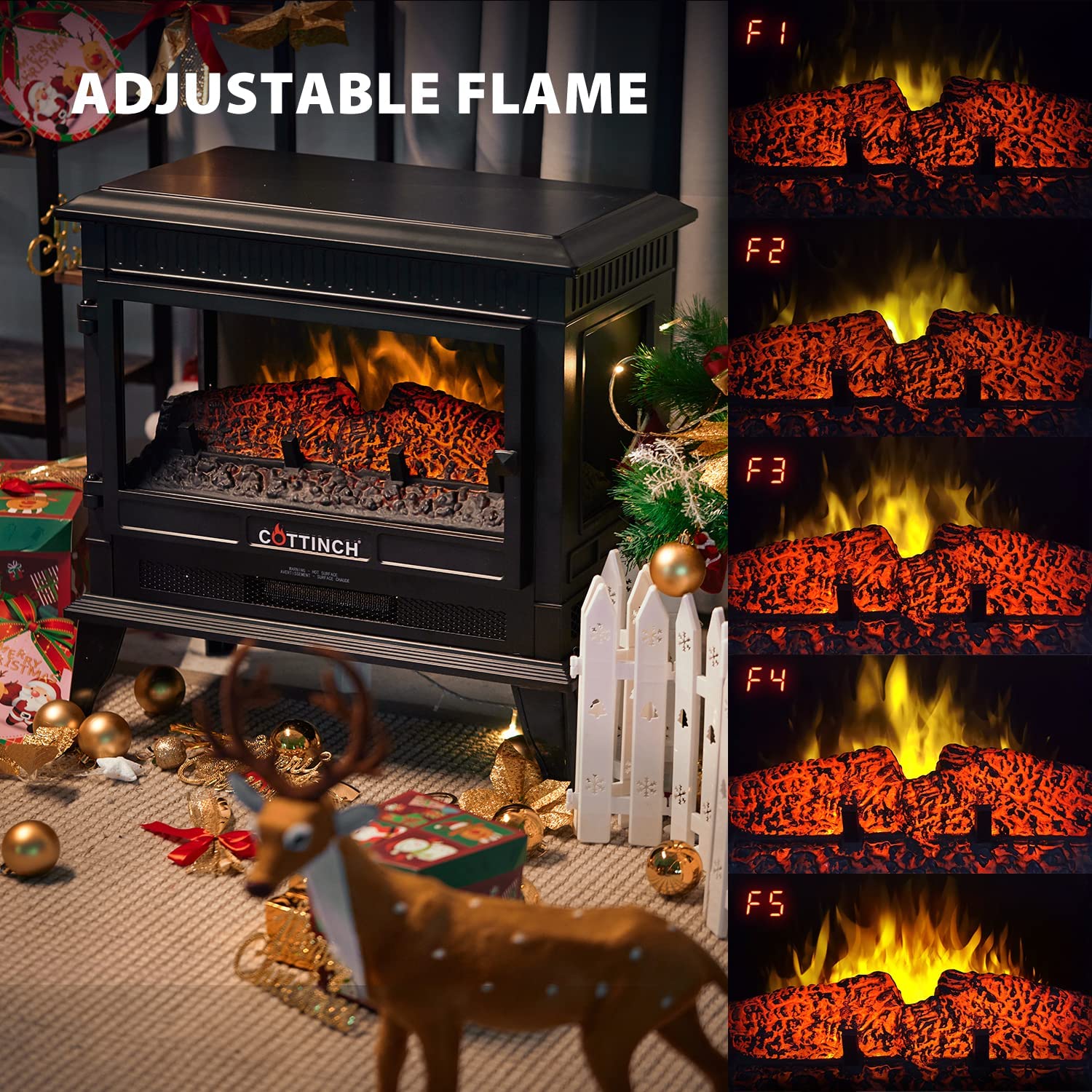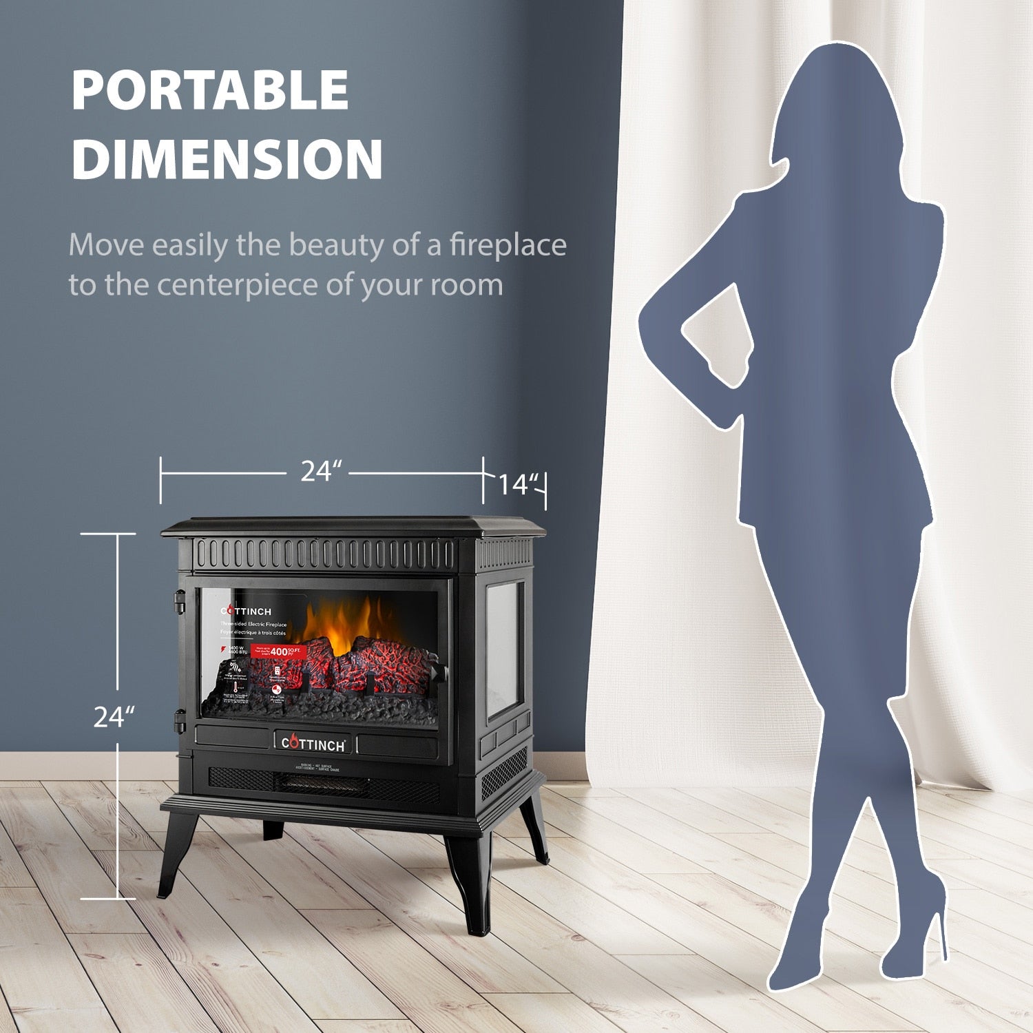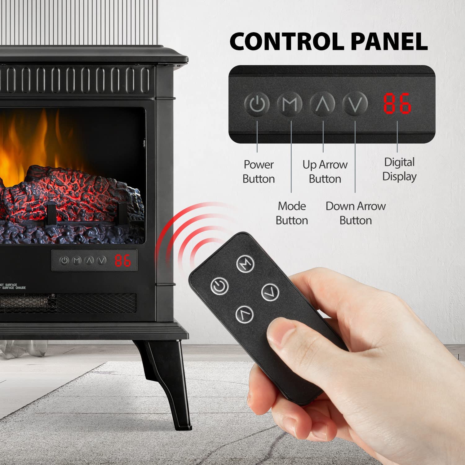 Freestanding Electric Fireplace Stove Heater w/ Realistic Flame / Timer / Remote for Indoor