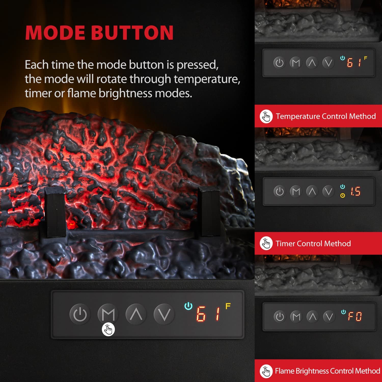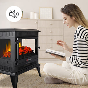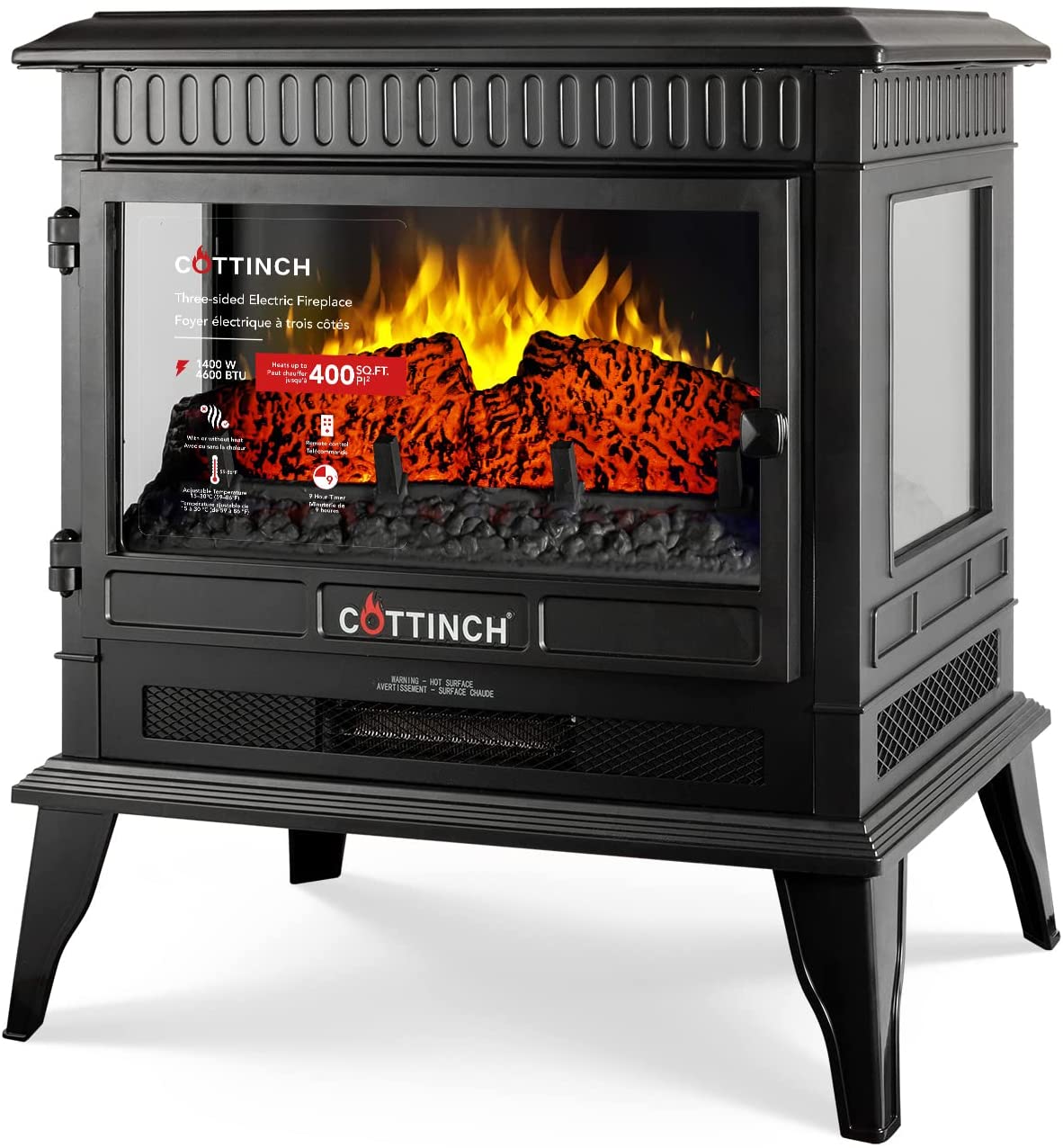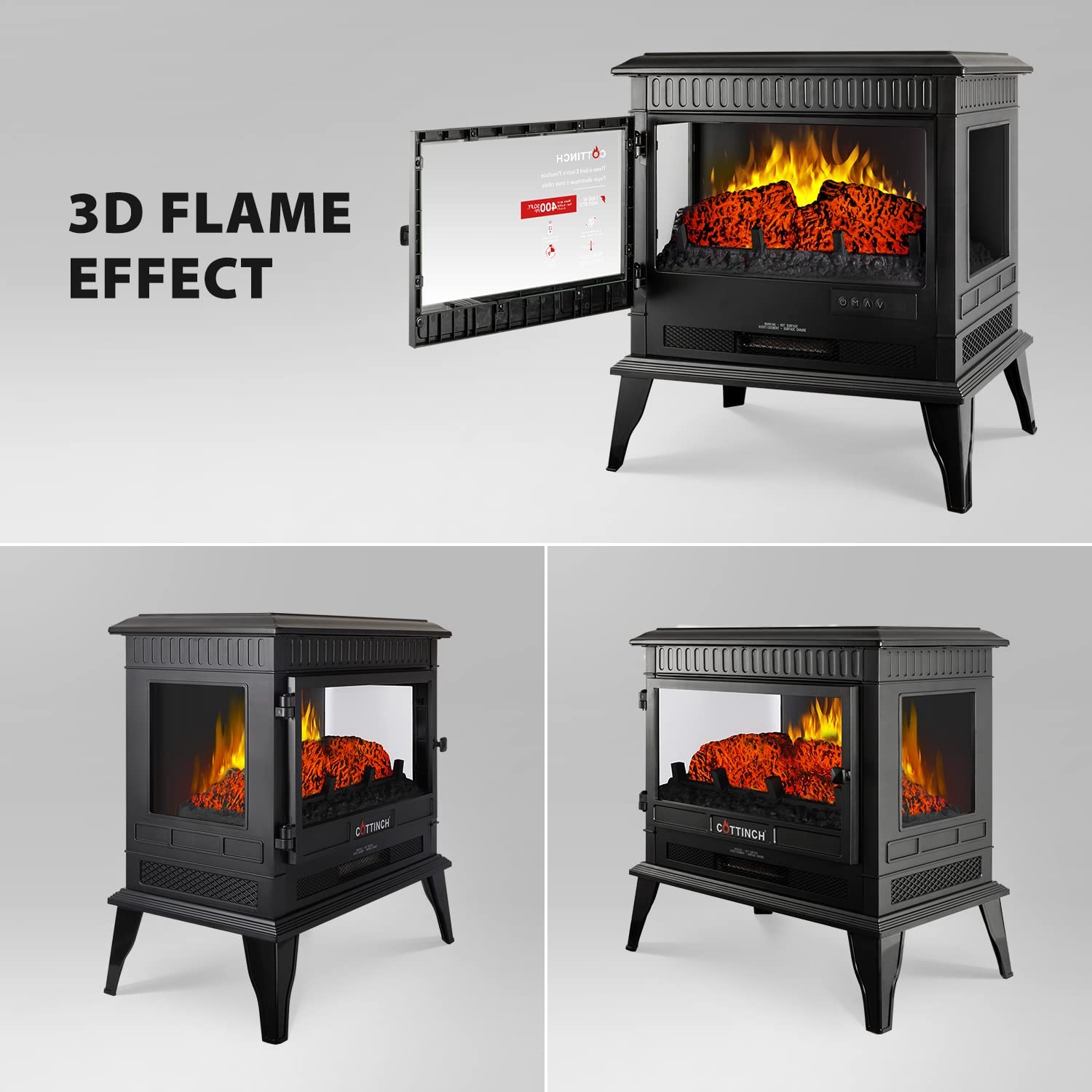 Freestanding Electric Fireplace Stove Heater w/ Realistic Flame / Timer / Remote for Indoor