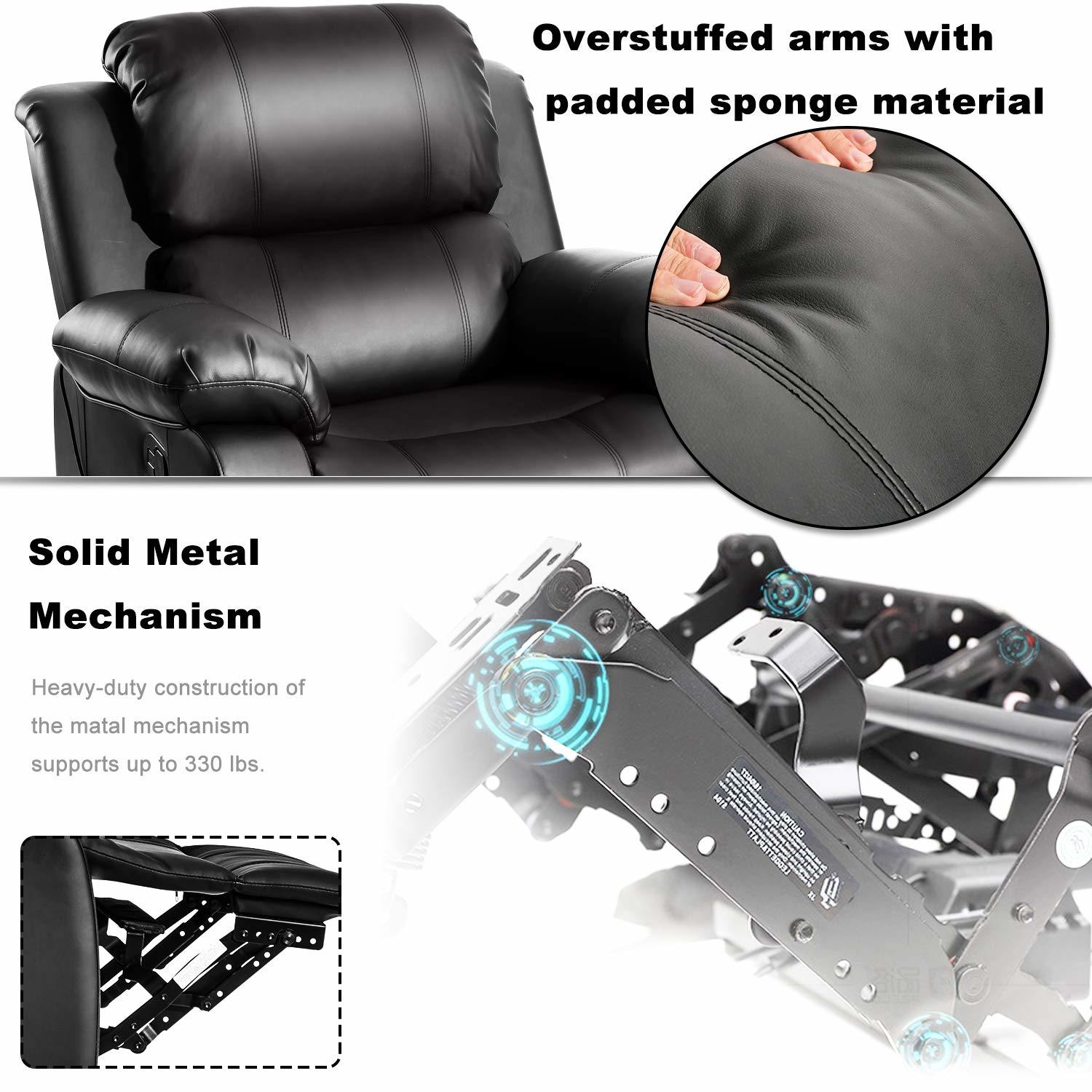 Leather Heated Massage Recliner Sofa Ergonomic Lounge with 8 Vibration Points (black) RT