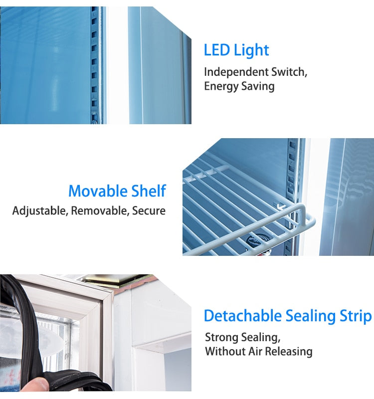You will love the look of this Lighted Luxury Beer Refrigerator with digital Intelligent temperature controller, firm durable hidden handle and universal wheel with brake for easy moving for your Home Bar