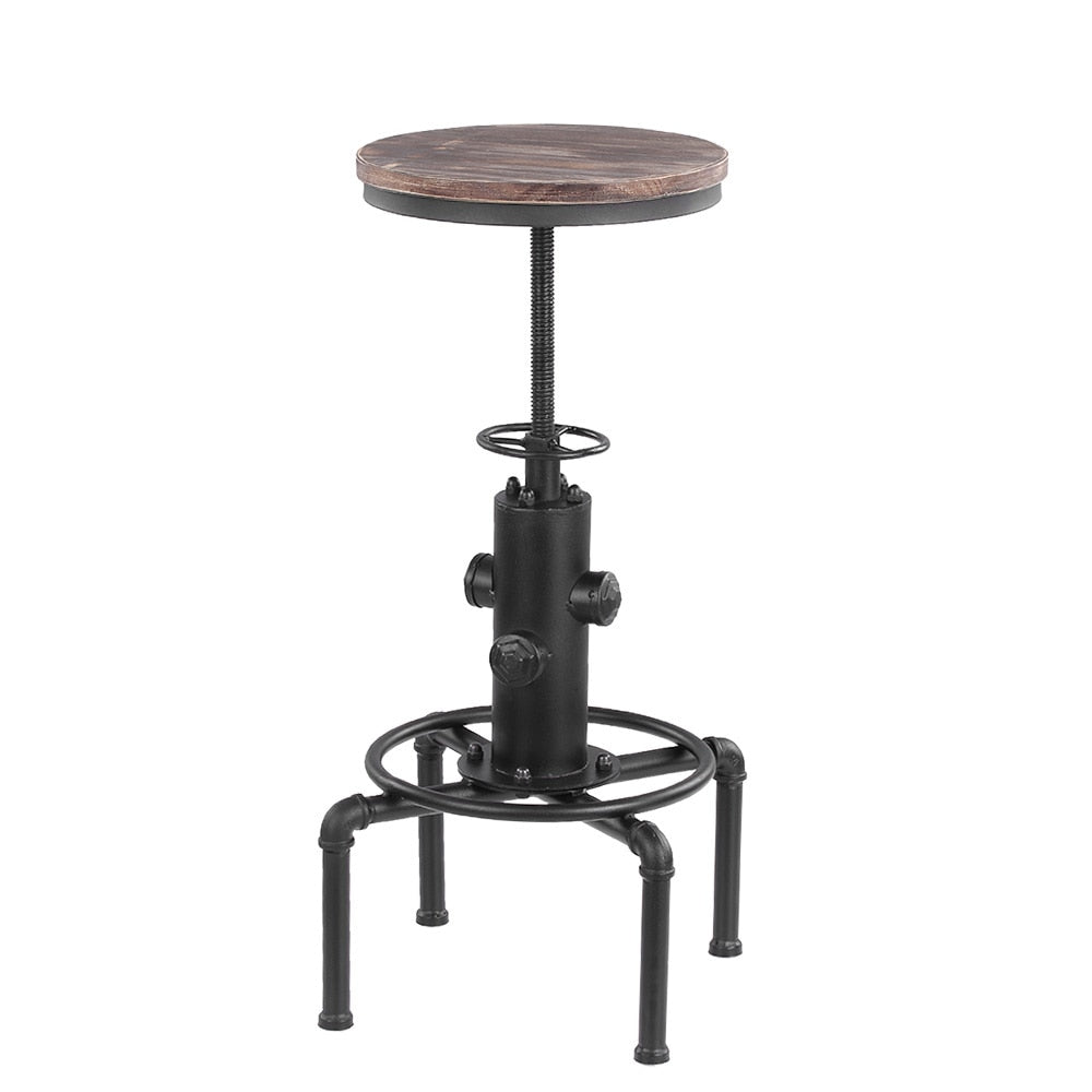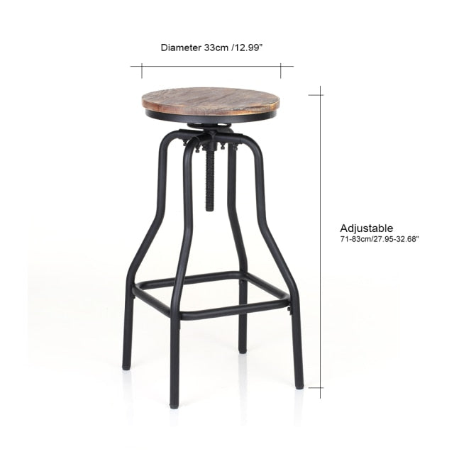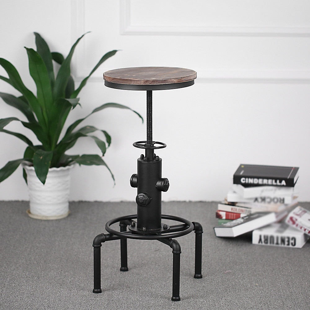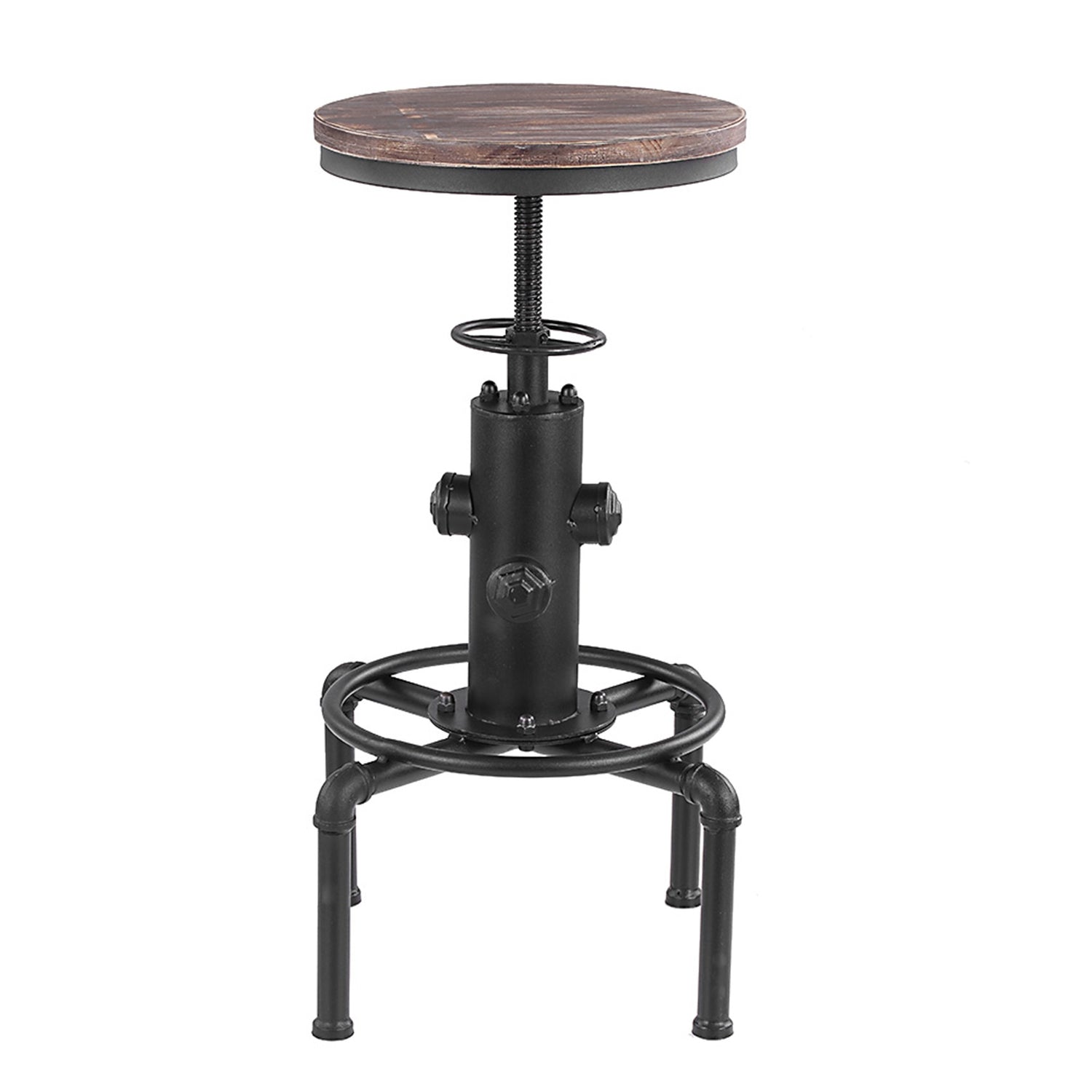 Metal Bar Stool with Height Adjustable Swivel and Pinewood Top and Pipe Barstool Footrest