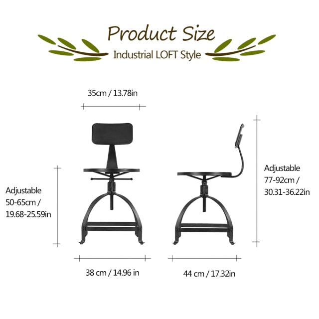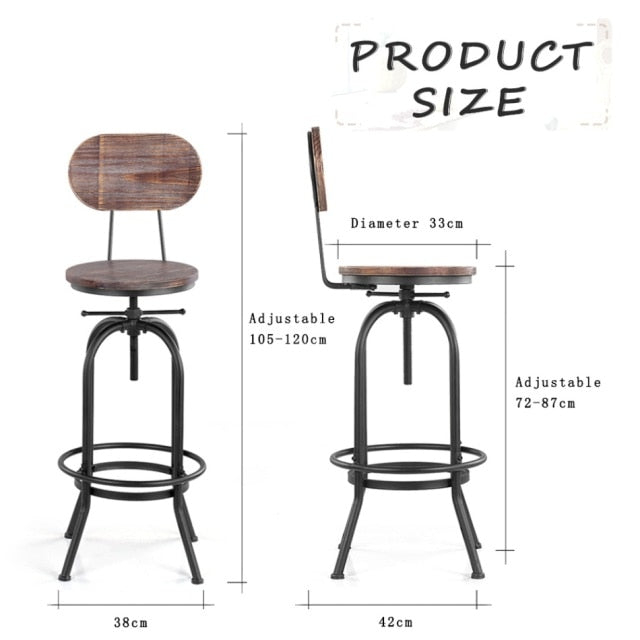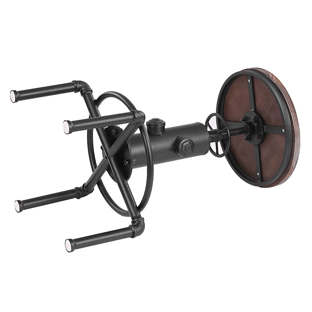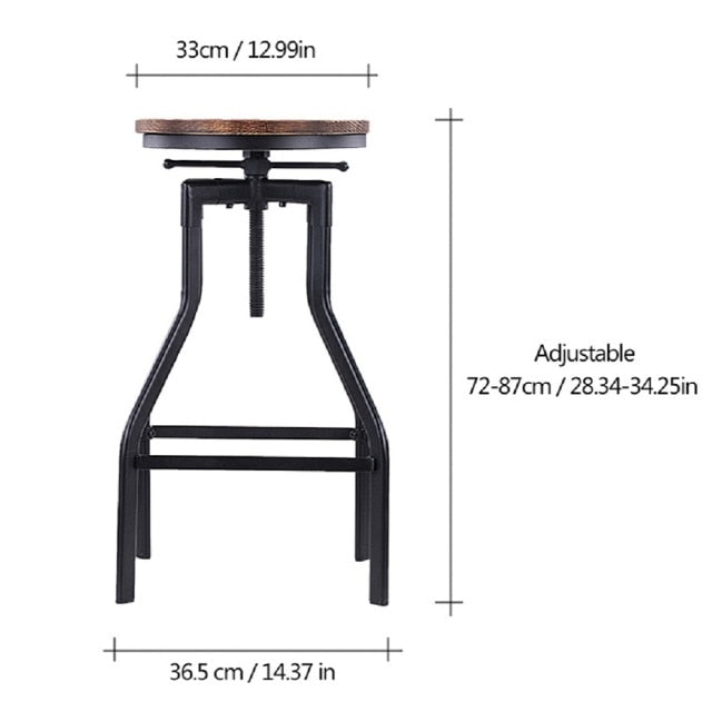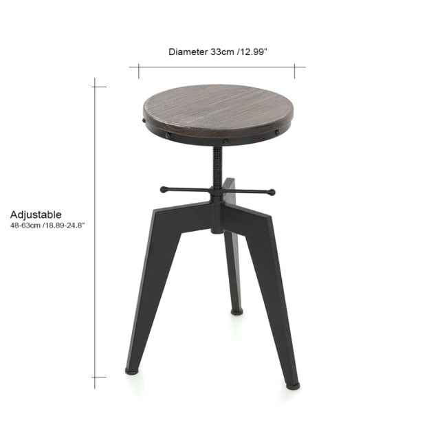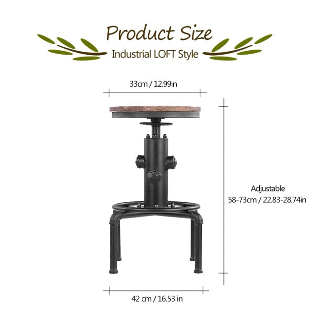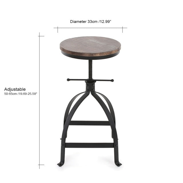 Metal Bar Stool with Height Adjustable Swivel and Pinewood Top and Pipe Barstool Footrest
