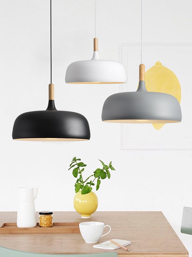 Nordic Modern Ceiling Wood Aluminum E27 Pendant Lights for Home Bar, kitchen/dining room table or pool table