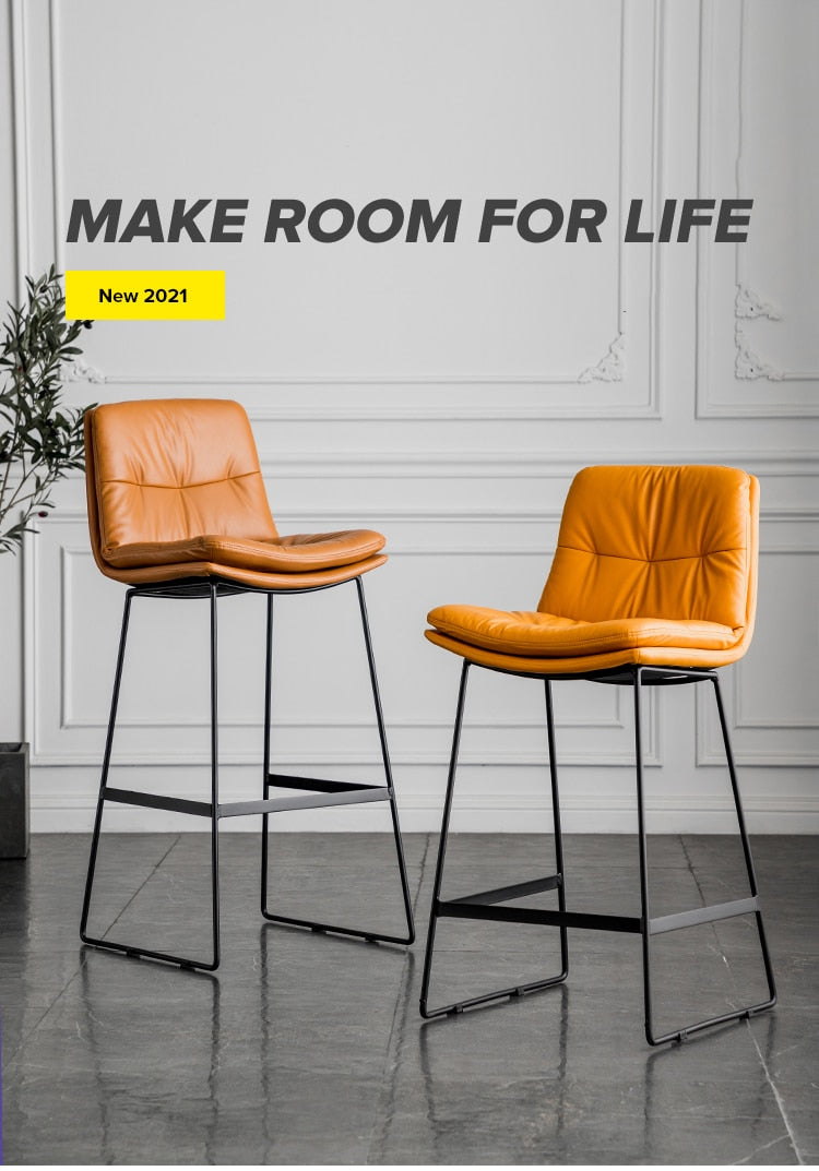 These modern leather bar chairs are what's in. Very comfortable and you can mix or match colors.