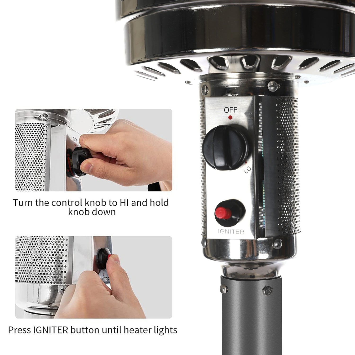 Simple Start: Up Piezo Ignition System -To operate, all it takes to light the heater is a simple push of the button thanks to its user-friendly, ONE-STE-P, Piezo ignition system