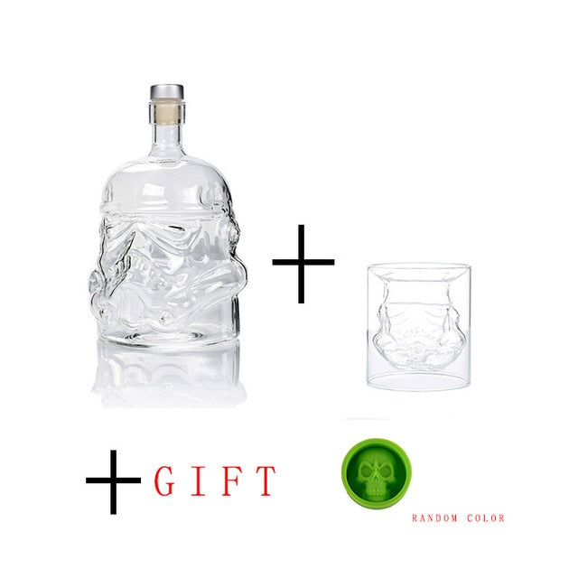 Storm Trooper Helmet Whiskey Decanter and glasses