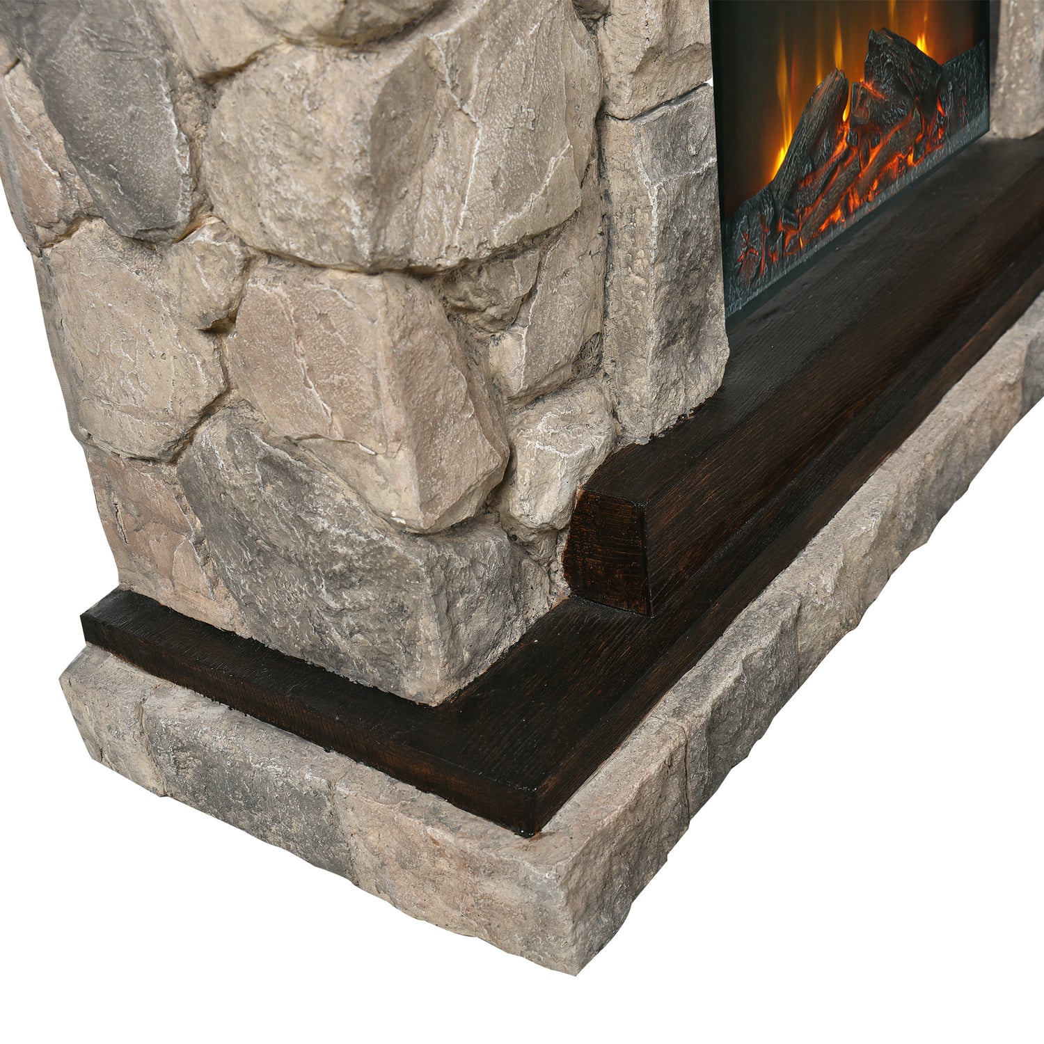 5 flickering flame effect settings (no flame, 70%, 85%, 100% brightness and cycle) Digital thermostat regulator ranging from 62-82°F at 2° interval. Remote control & touch control