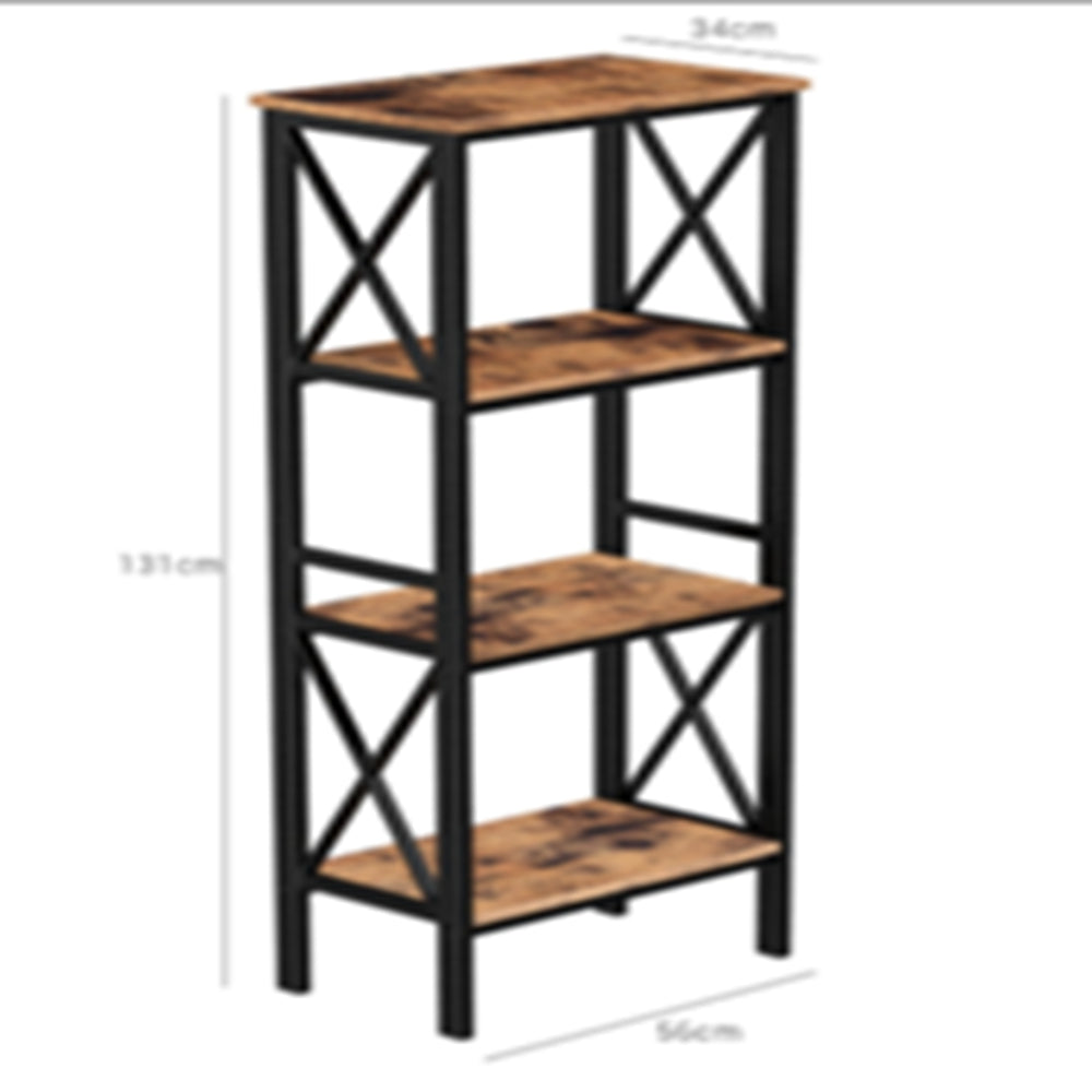 Specifications: - Color: Rustic Brown, Black - Material: Particleboard and Metal - Product Size: 22"L x 13.4"W x 51.5"H (56 x 34 x 131 cm) Package Contents: - 1 x Storage Shelf - 1 x Accessory Kit - 1 x Instructions (EN, DE, FR, ES, IT)