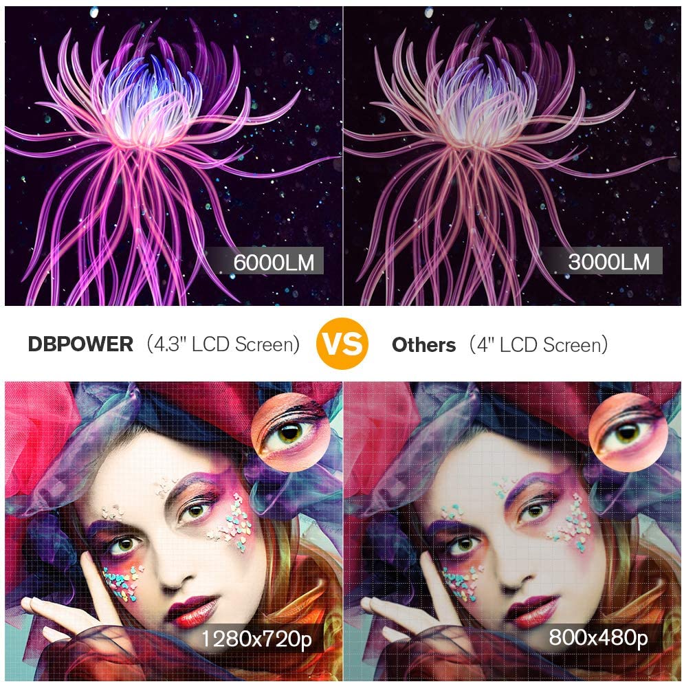 1. Remarkable brightness and clarity - DBPOWER L21 adopts the latest 4.3’’ LCD display technology with advanced LED light sources, bright 200ANSI-6000Lux, 3000:1 contrast ratio, supporting 1920x1080p highest resolution makes it brighter than other comparable mini projectors on the market. It’s ideal for home entertainment in dark. NOT recommended for Powerpoint, Word, Excel, or business presentation