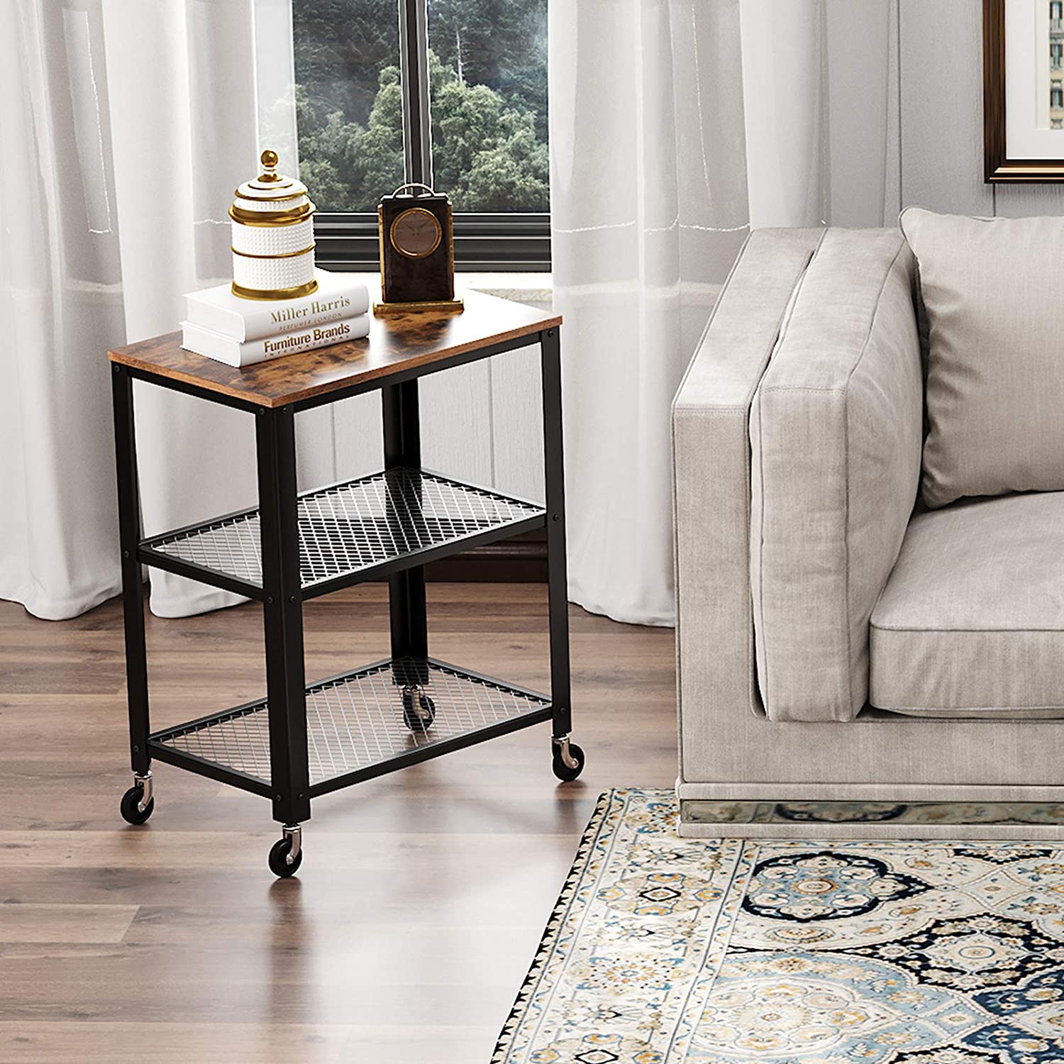 VASAGLE Serving Cart Trolley, Industrial Kitchen Rolling Utility Cart, Heavy Duty Storage Organiser, Wheels, for Kitchen and Living Room, Rustic Brown LRC78X