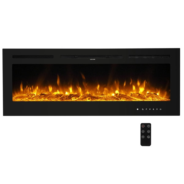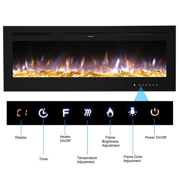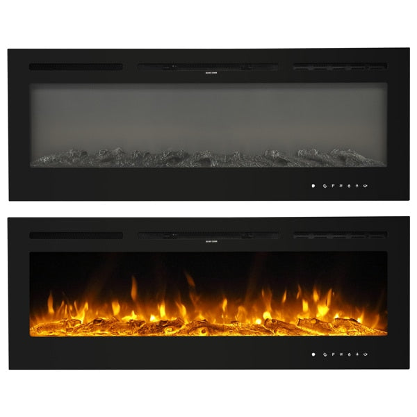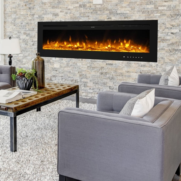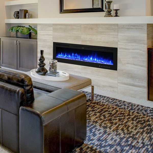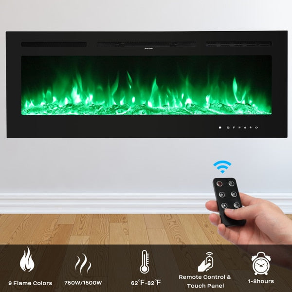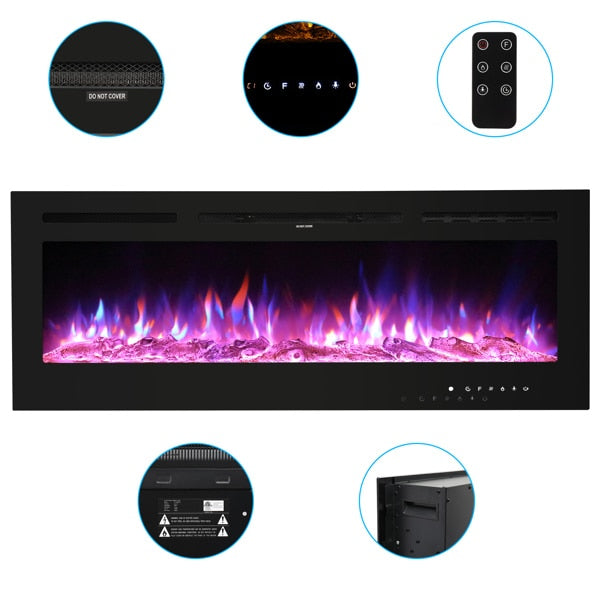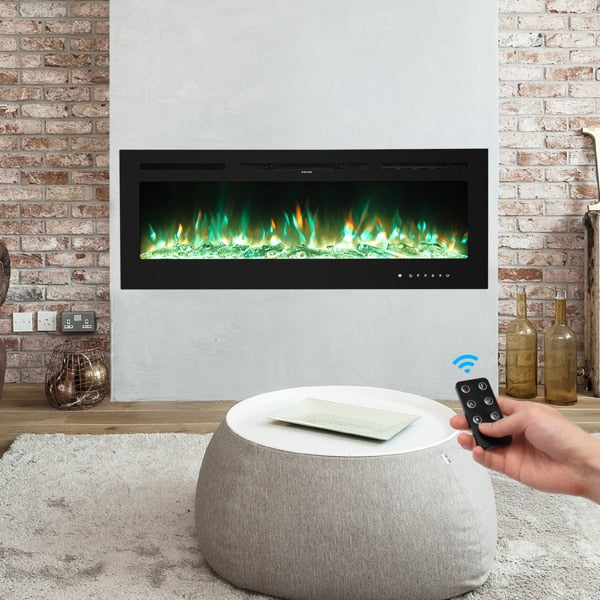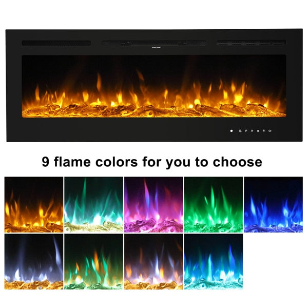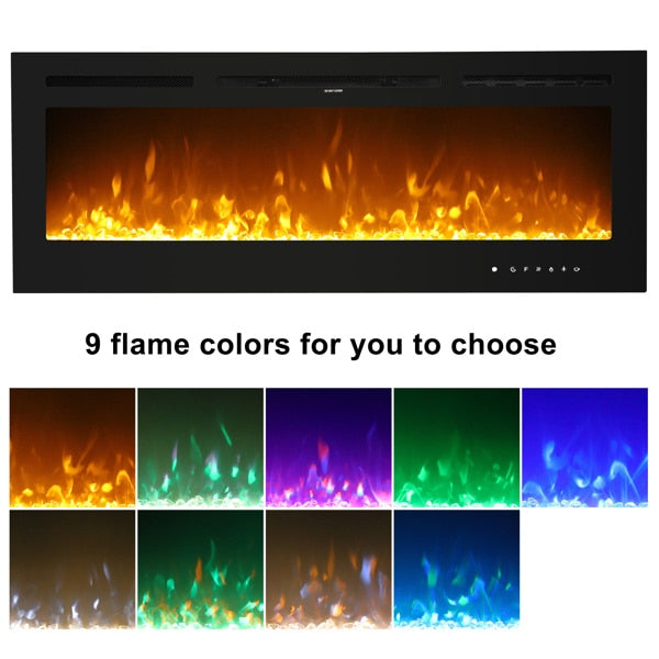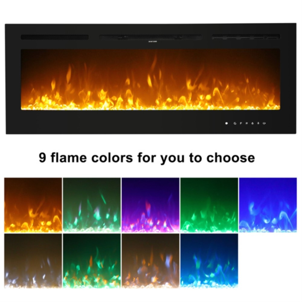Fireplace With Remote Control Colorful/9-Color Flame Fireplace 120.00V 1500.00W 60in Glass Recessed/With Crystal Stone