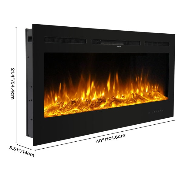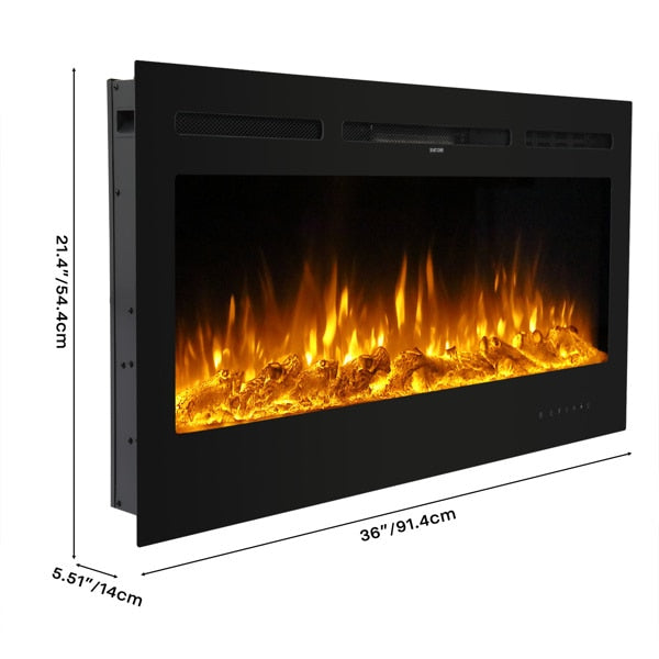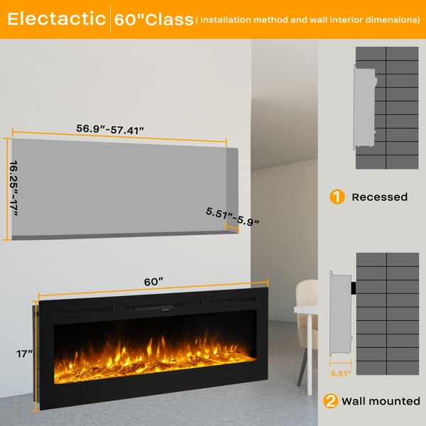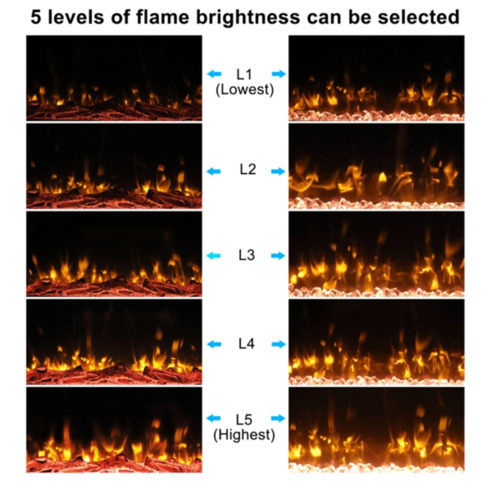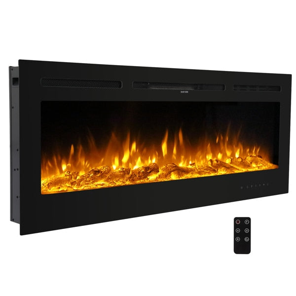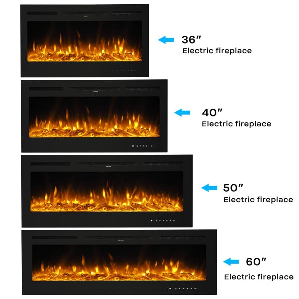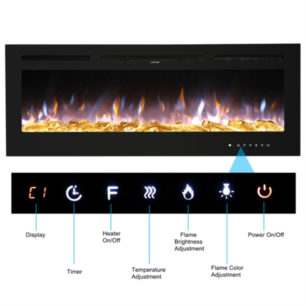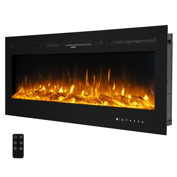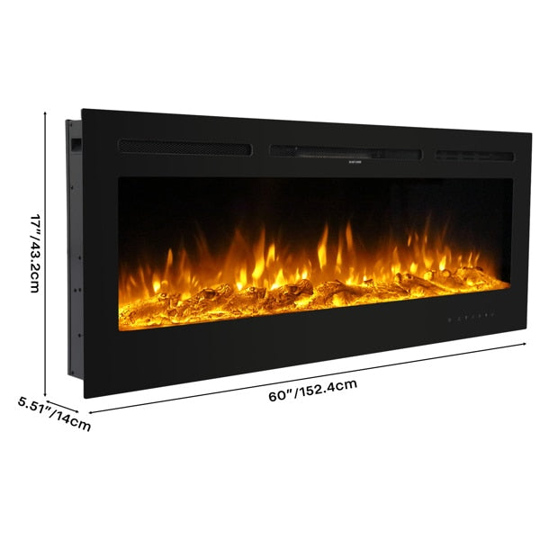Fireplace With Remote Control Colorful/9-Color Flame Fireplace 120.00V 1500.00W 60in Glass Recessed/With Crystal Stone